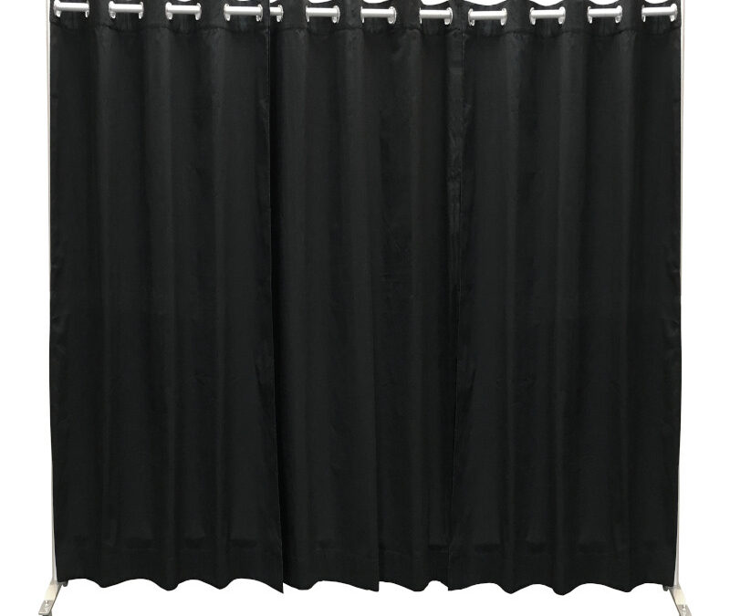 Pipe-and-drapewand H300xB301 zwart op wielen